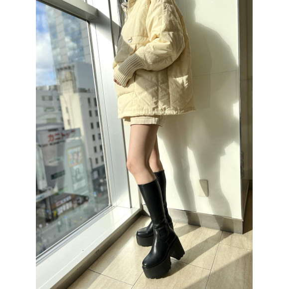 รองเท้าบูทยาวของการออกแบบแท็งก์พื้นรองเท้าส้นหนาที่เป็นโบะริวมิ