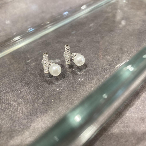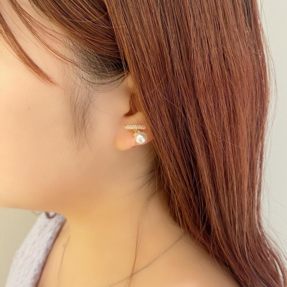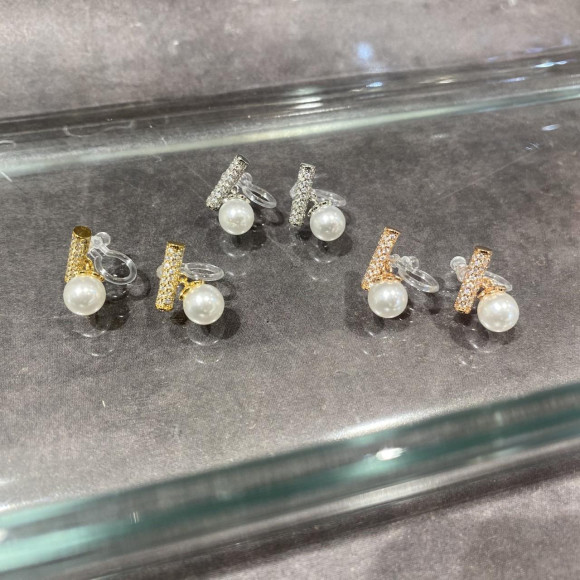 [การรองรับโรคภูมิแพ้โลหะ] ต่างหูเพชรบาร์ไข่มุกไม่หอประชุมต่างหู /