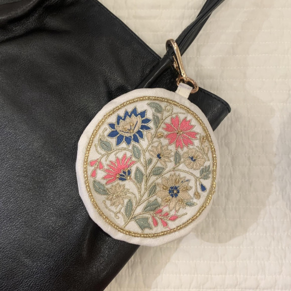 ระเบียงช่องทางแก้ปัญหาของการเย็บปักถักร้อยเดอะอีกครั้งที่เหมือนกับช่อดอกไม้เล็กที่เบ่งบานที่กระเป๋าเข้ามา